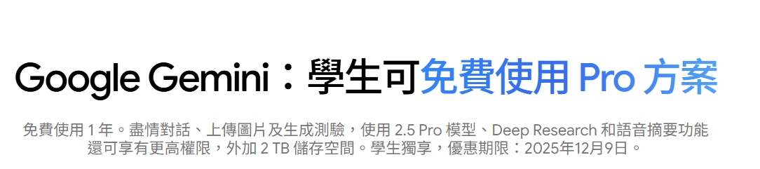 官方網站:https://gemini.google/tw/students/?hl=zh-TW