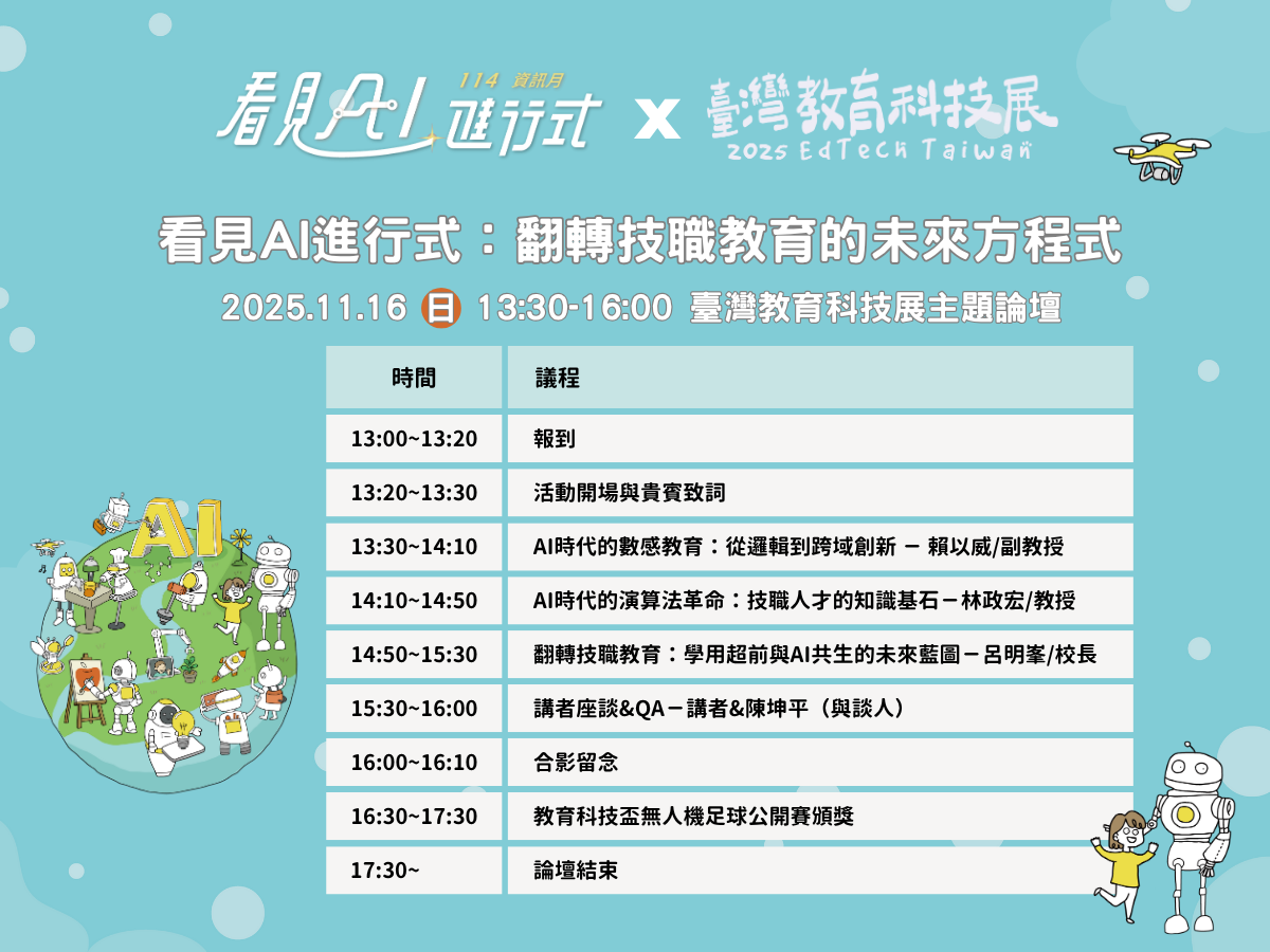 11/16(日)「看見AI進行式:翻轉技職教育的未來方程式」主題論壇