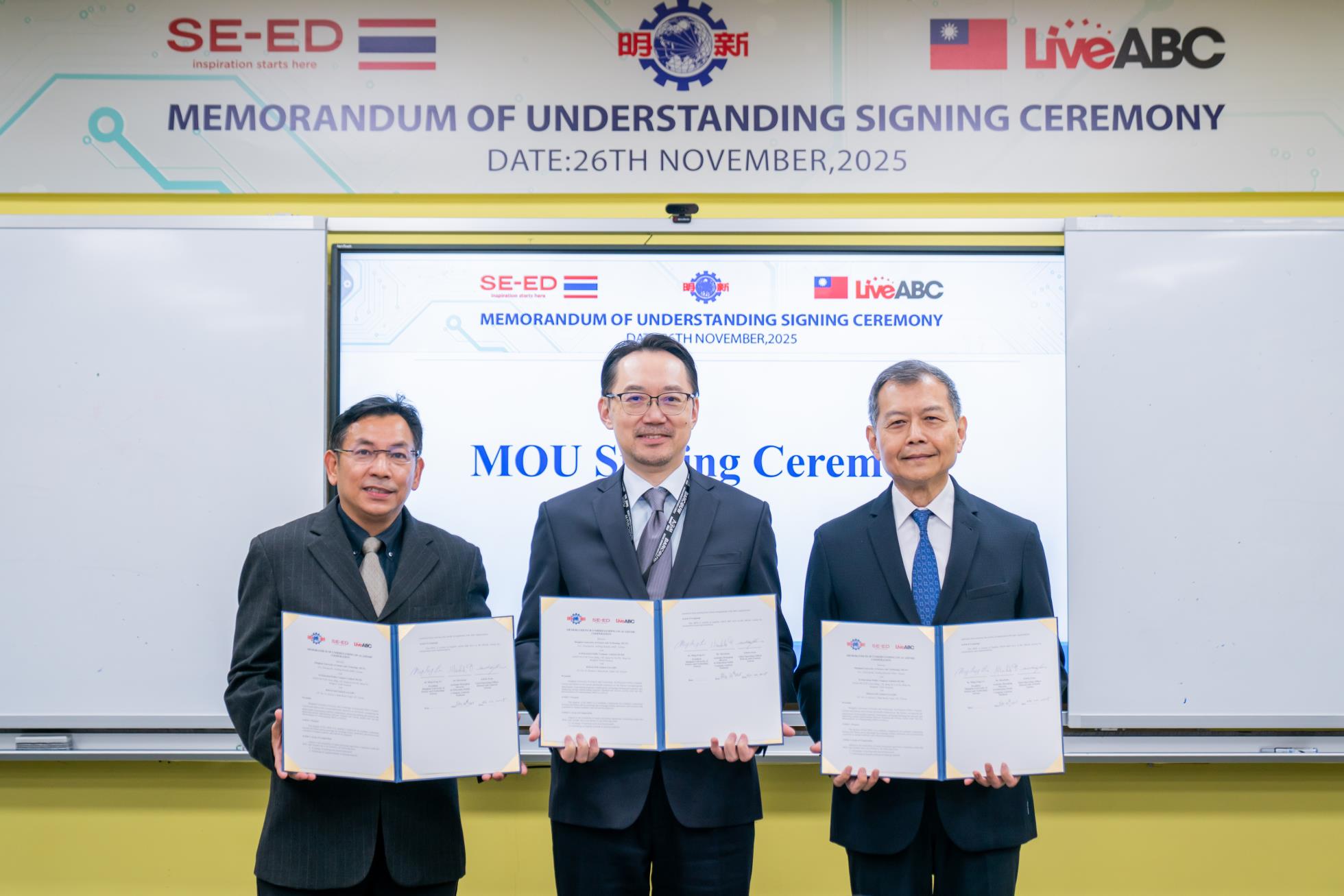 全球半導體人才競賽白熱化,各國爭相布局科技教育,台灣技職體系也在此時受到國際重視。明新科技大學日前與泰國最大教育出版與書店集團 Se-Education(SE-ED)及語言教育領導品牌 LiveABC 簽署三方合作備忘錄(MOU),正式建立跨國學生引薦、半導體人才培育與雙語教育合作機制,為台泰教育合作開啟新局,進一步印證明新科大具備培育跨境人才的關鍵實力。