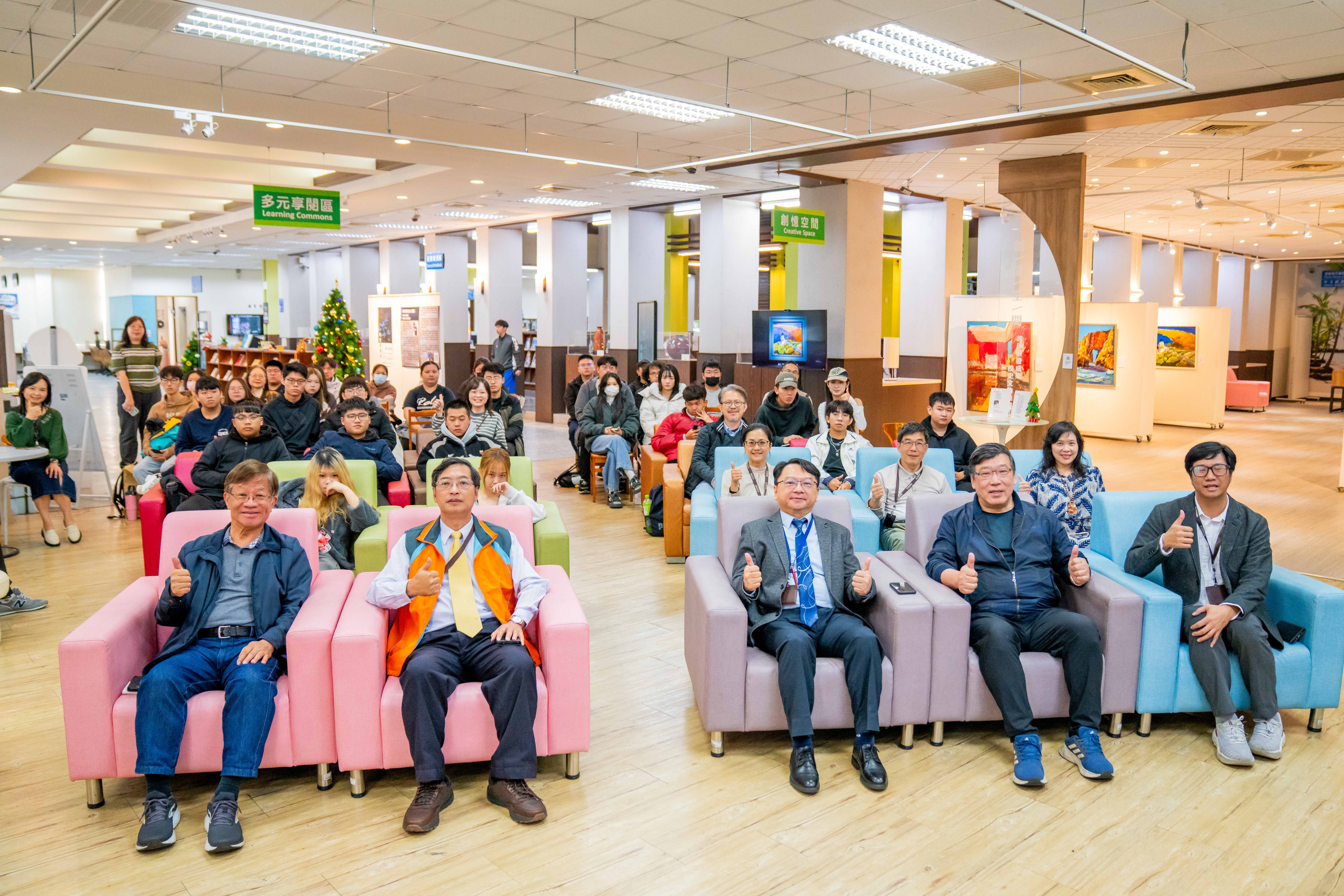 圖三:特展開幕儀式現場,明新科大呂明峯校長(中)與藝術家曹松清(右二)合影留念。