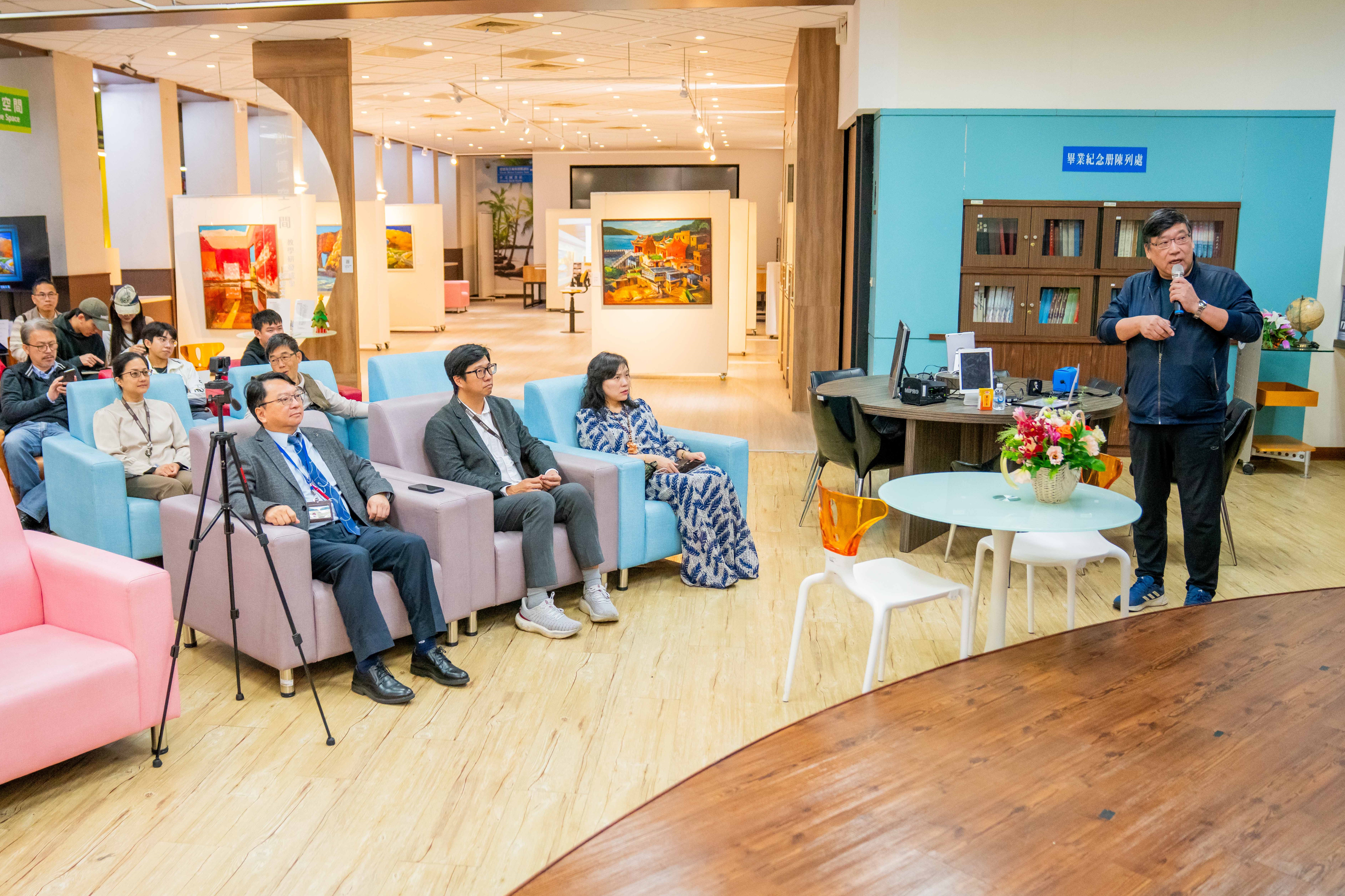 圖四:藝術家曹松清(右一)於開幕座談中分享創作理念,說明他如何將馬祖海島地景中,晨霧、潮汐與光線的流動,化為筆下深沉而溫柔的視覺語彙。
