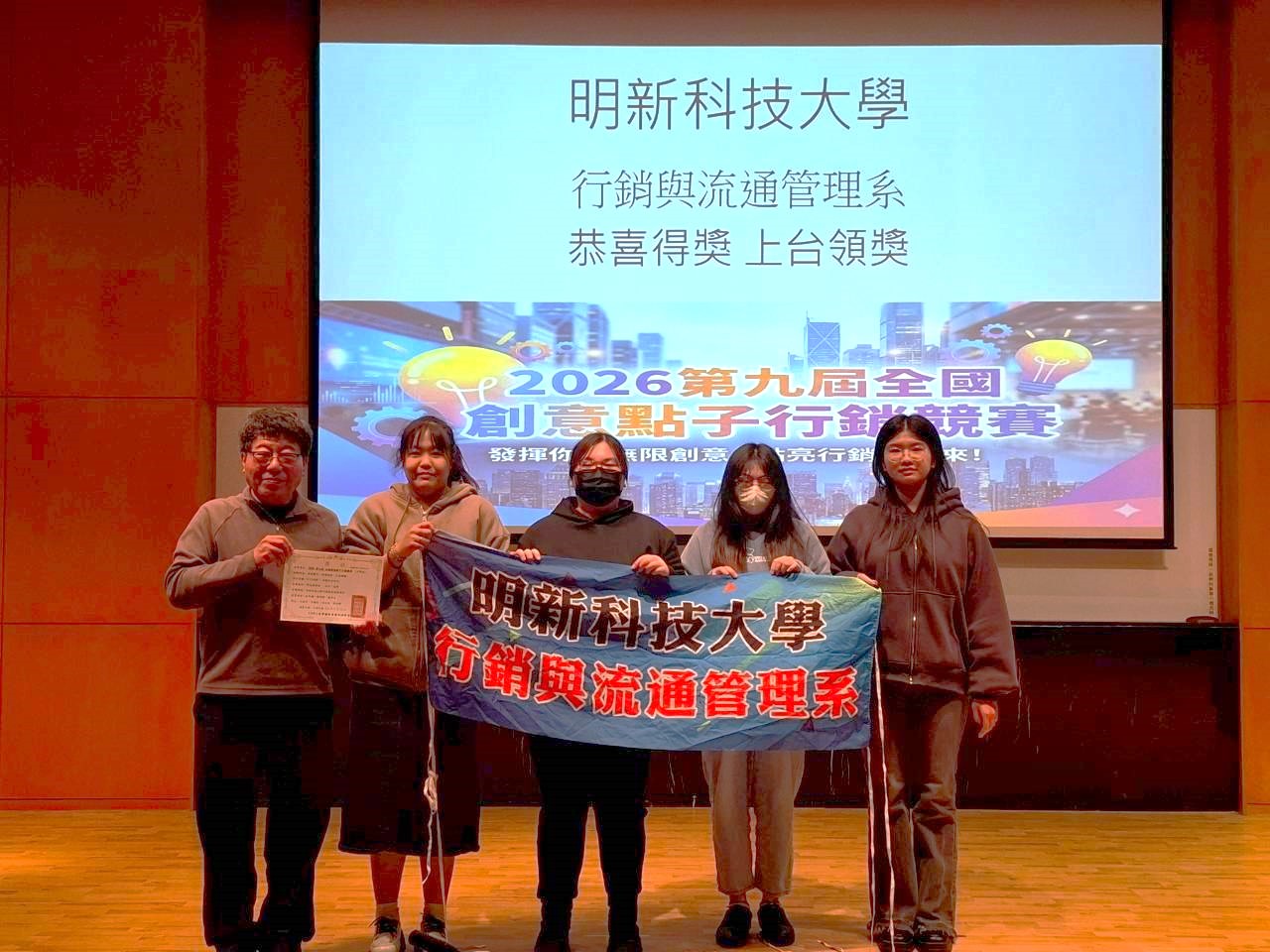 明新科技大學行銷與流通管理系在全國性賽事中再傳捷報!於日前圓滿落幕的「2026 第九屆 全國創意點子行銷競賽(大學組)」中,明新科大參賽團隊憑藉敏銳的市場洞察力與創新的企劃實力,在眾多參賽隊伍中脫穎而出,一舉拿下「科技應用組」金牌及「行銷企劃案組」銀牌,展現該系深厚的實務教學成效。洞察通路與科技趨勢 奪下金牌榮耀獲得科技應用組金牌的團隊由呂淑萍、李韻玫、田玉琰、陳映樺四位同學組成,在杜怡嫻、楊明錞、魏季宏老師的專業指導下,以作品「7-11品牌|改變生活便利」參賽。該企劃深入剖析零售龍頭如何運用科技提升生活便利性,其創新的觀點與嚴謹的邏輯獲得評審團高度肯定。深度解析品牌核心 榮獲銀牌殊榮同一團隊(呂淑萍、李韻玫、田玉琰、陳映樺)在行銷企劃案組亦表現優異,由鍾政偉、魏季宏、邱勇嘉老師指導,以作品「解碼星巴克–核心競爭力解析」榮獲銀牌。學生們透過市場數據分析與品牌策略研究,精準解構國際知名品牌的競爭優勢,展現出行銷人應具備的實戰分析能力。理論與實務並重 培育行銷尖兵此次競賽由 TIPCI 臺灣國際專業認證學會主辦,旨在鼓勵大專院校學生發揮創意,將課堂理論轉化為具體的行銷方案。明新科大行銷系學生能同時在不同類別中奪下頂尖獎項,顯示該系在「科技應用」與「傳統企劃」兩大領域的教學均達全國頂尖水準。參賽學生表示,透過這次競賽,不僅鍛鍊了團隊合作與溝通能力,更在指導老師的帶領下,學會如何將複雜的市場現象轉化為具商業價值的企劃案。這份榮耀不僅是對學生努力的肯定,也再次擦亮了明新科大「行銷與流通管理」的專業招牌。