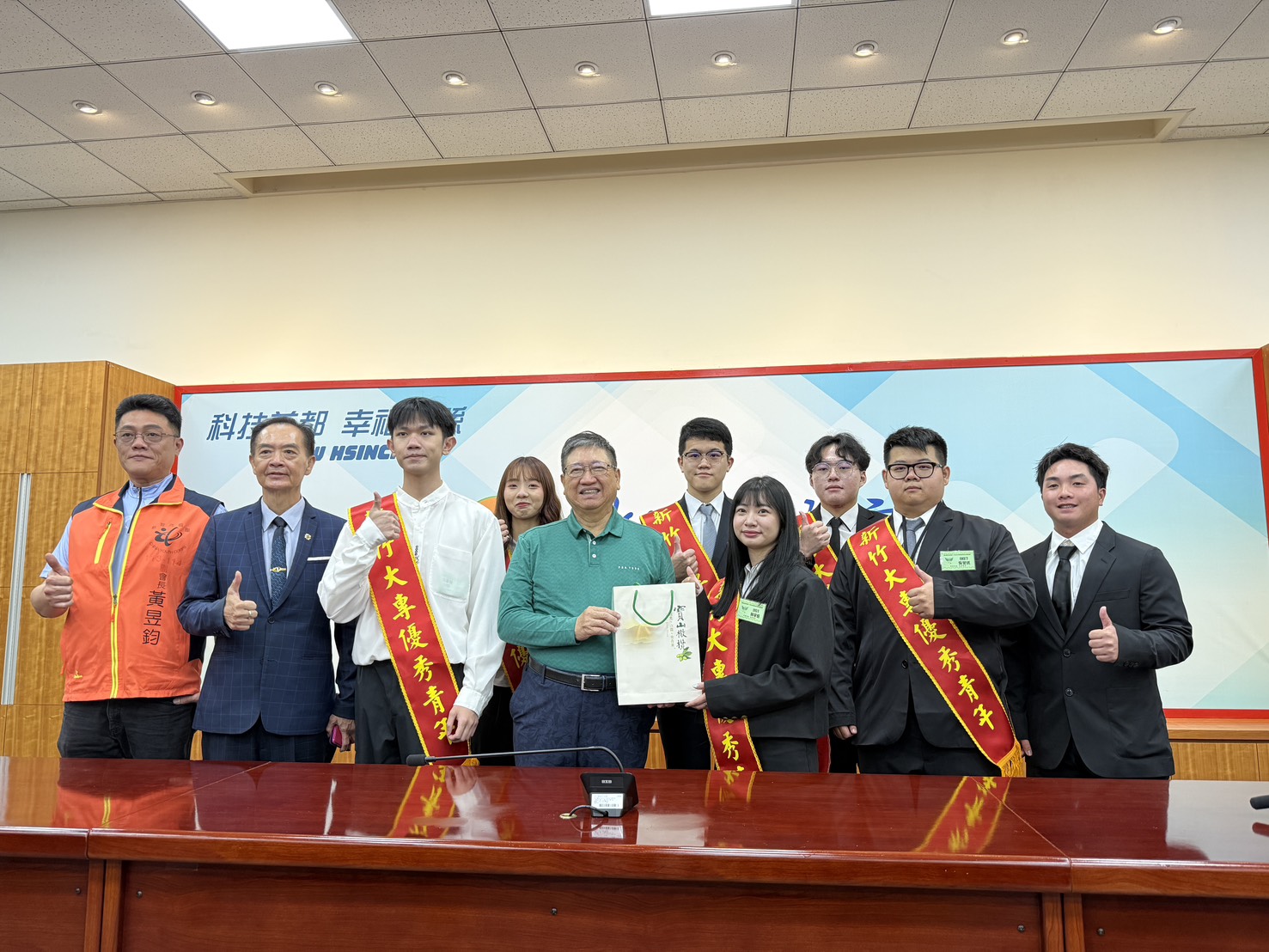 明新科技大學學子再傳捷報!為表彰青年對社會與校園的貢獻,明新科技大學歷年積極配合中國青年救國團辦理「優秀青年選拔」。今(115)年校內數名優秀社團幹部憑藉卓越的服務表現與學術成就,榮獲「115 年大專優秀青年獎」,並受邀前往新竹縣政府,由縣長楊文科親自接見表揚並致贈禮品。楊縣長高度肯定明新學子在多元領域的傑出表現,稱許其為青年典範。