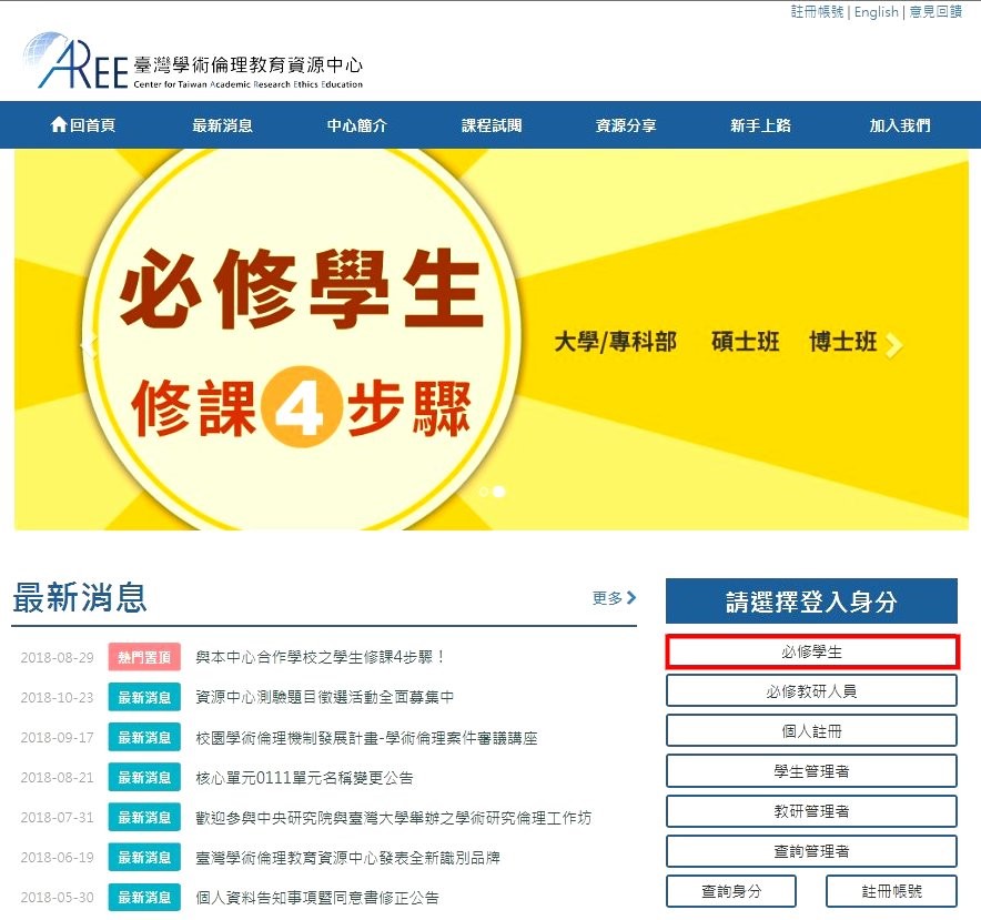 3.操作說明網址(選擇「必修學生」):https://ethics.moe.edu.tw/newuser/