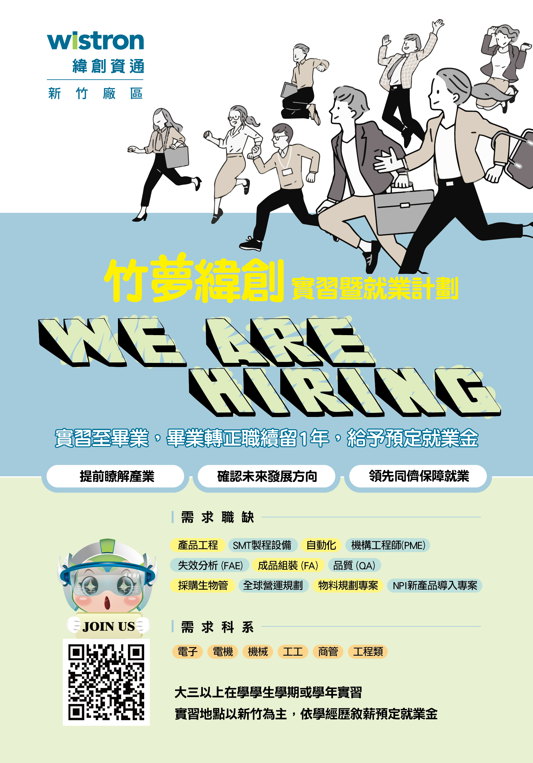 緯創資通「竹夢緯創學期實習計畫」熱烈招募中!