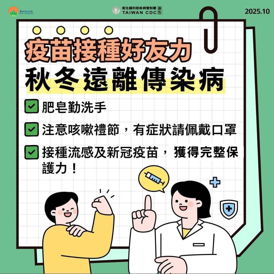 疾管署提醒,鑑於近期氣溫變化大,流感和新冠病毒每年都在變異,因此每年都要接種才能更新保護力,
