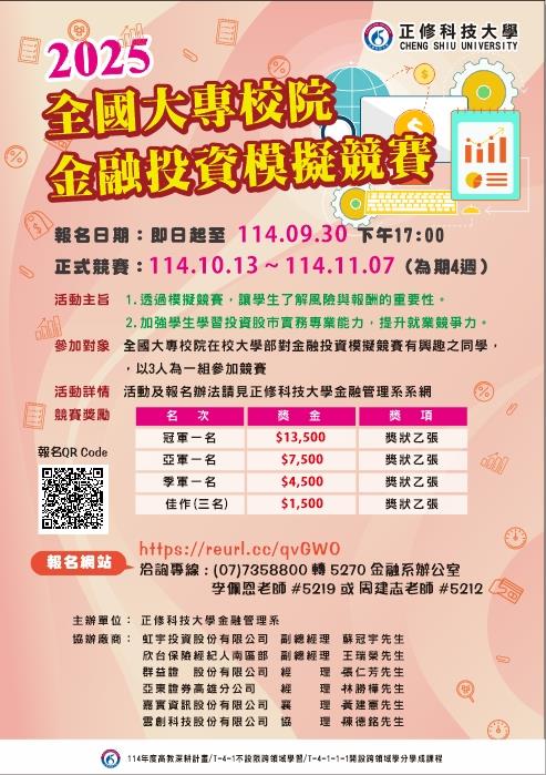 正修科技大學金融管理系「2025全國大專校院金融投資模擬競賽」