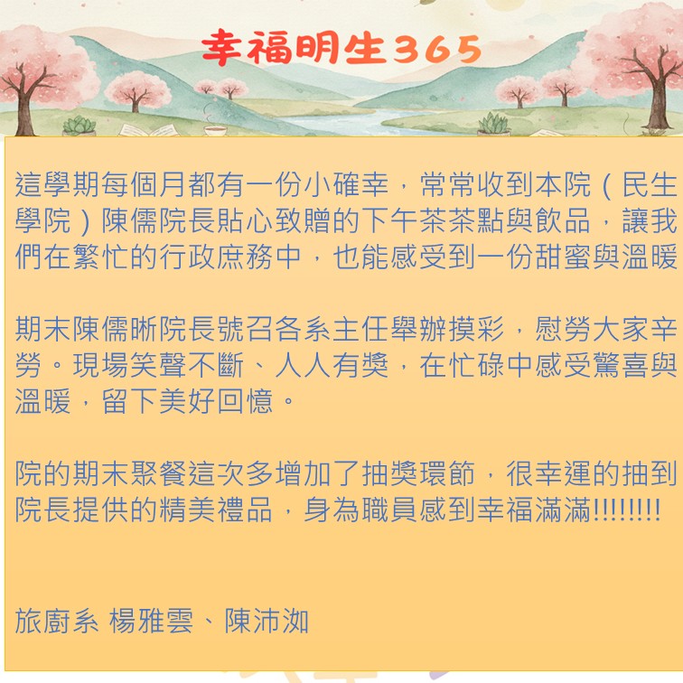【幸福明生365】院的期末聚餐這次多增加了抽獎環節,很幸運的抽到院長提供的精美禮品,身為職員感到幸福滿滿!!!!!!!!