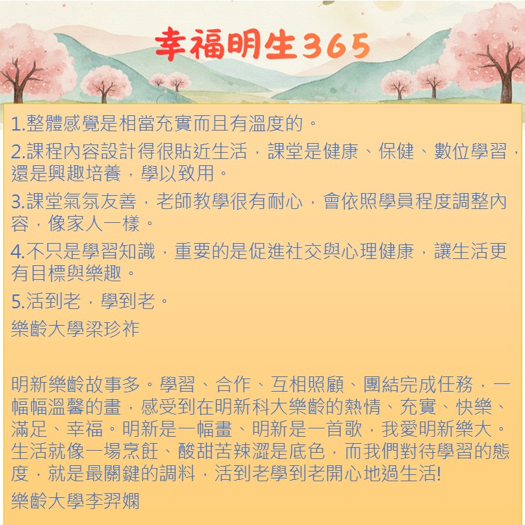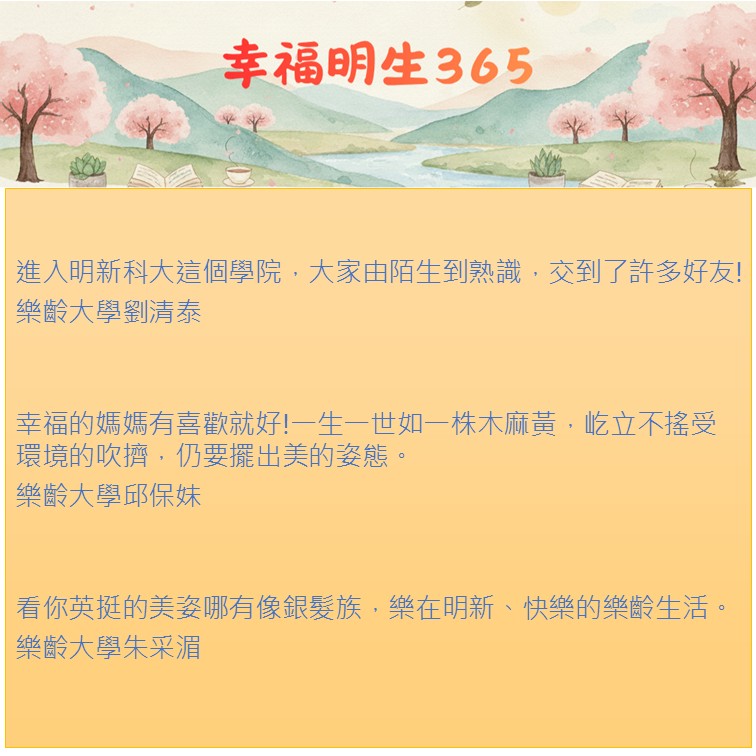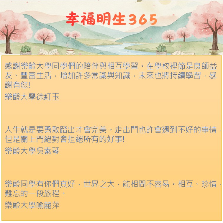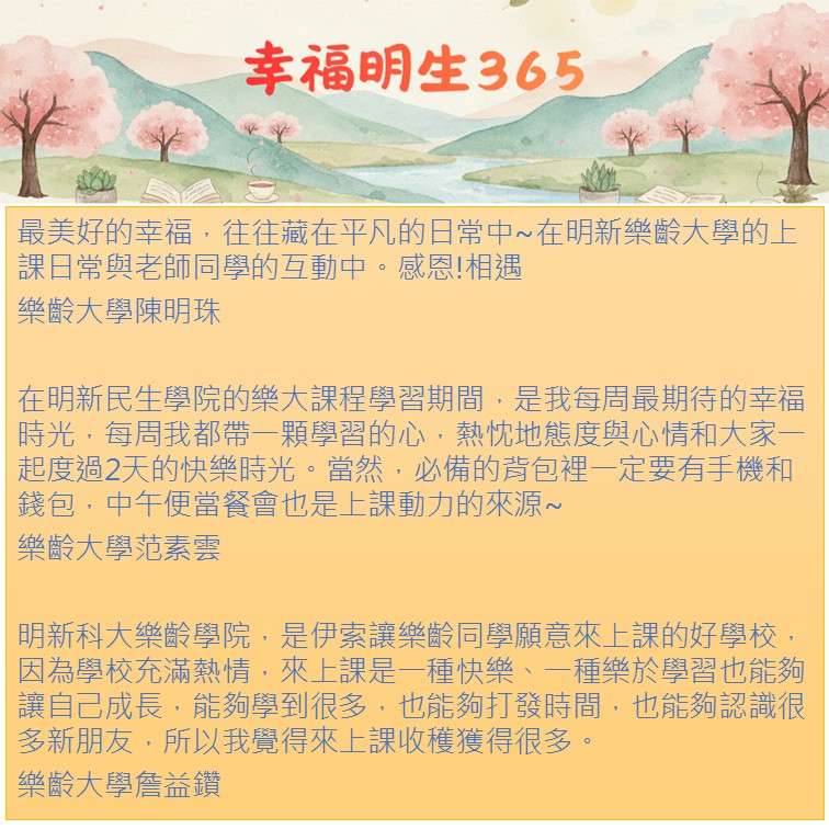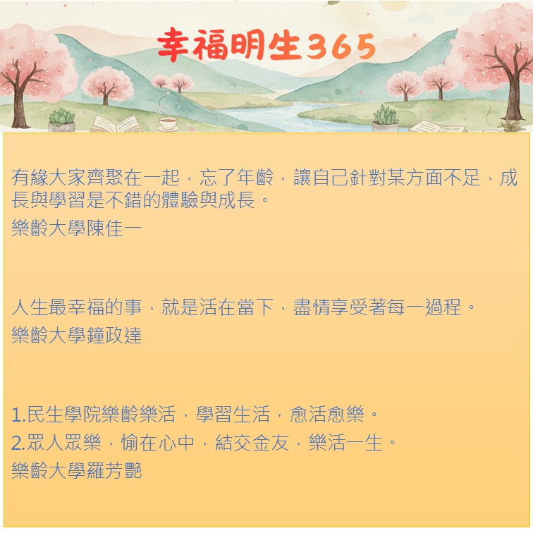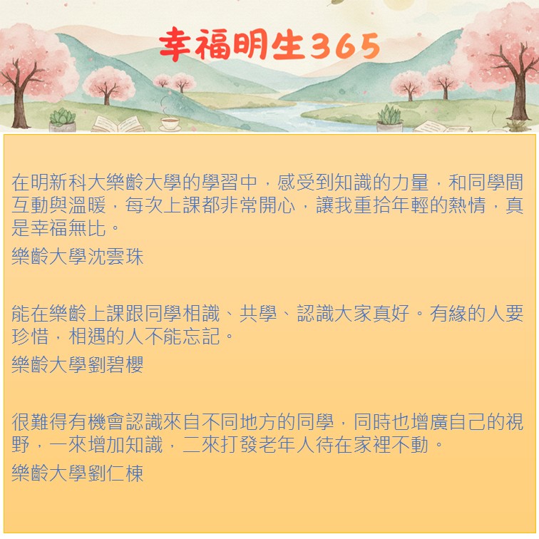 【幸福明生365】樂齡大學大哥大姐給予的祝福
