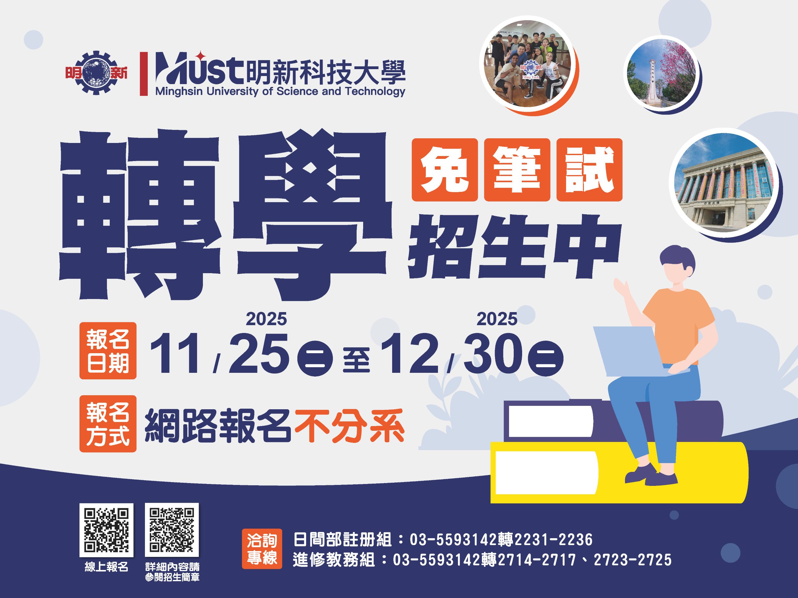 【招生】114-2轉學生招生申請公告11/25-12/30止
