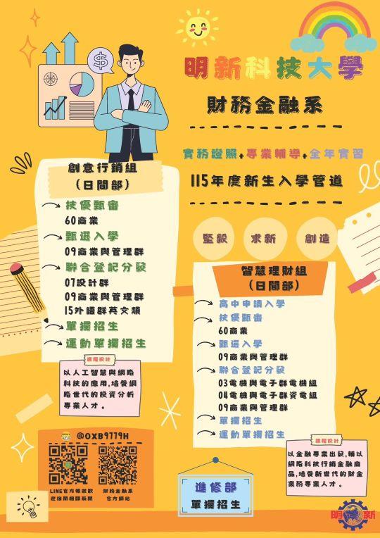 明新科技大學 財務金融系 115 學年度新生入學管道
