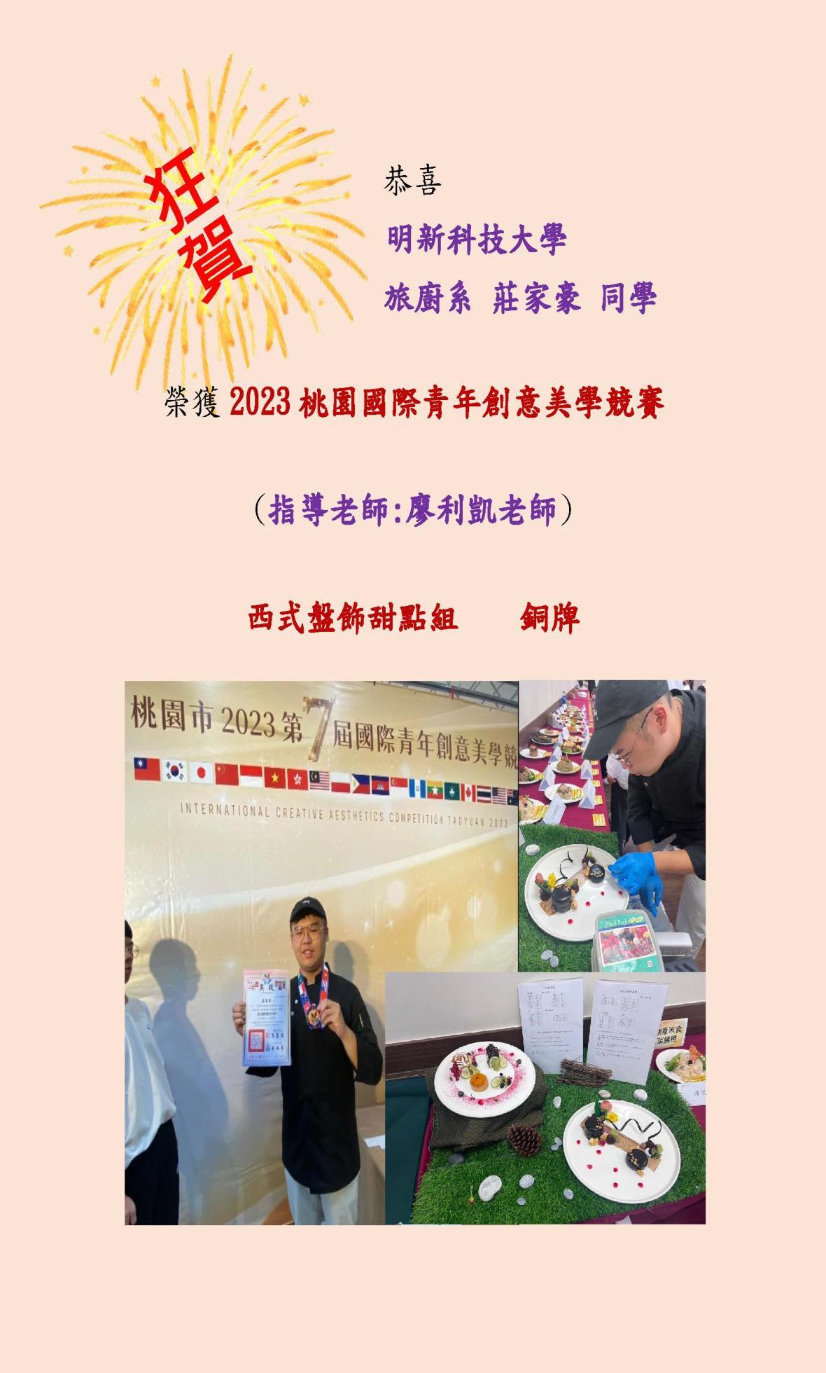 榮獲2023新竹縣新豐鄉第四屆明新盃廚藝暨飲調大賽-2金2银2銅1佳作
